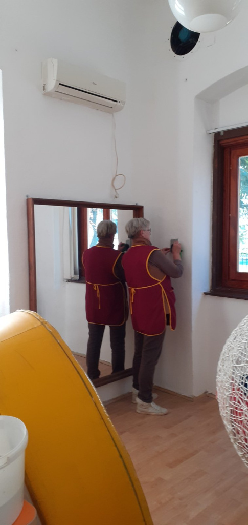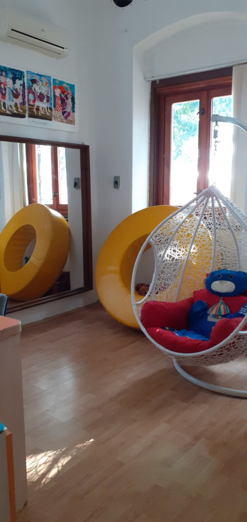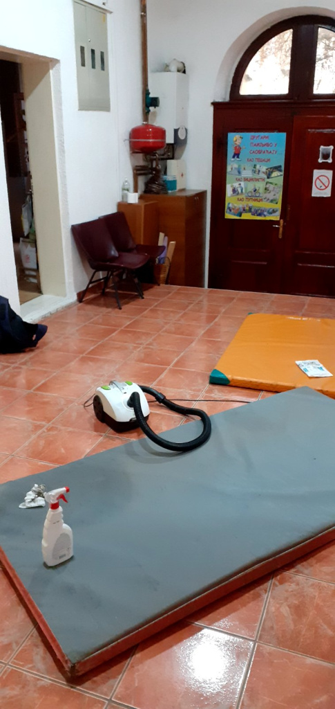 сместе. У просторији намењеној за корективно - превентивне вежбе и игре санирани су делови пропалих зидова и окречени, како просторија није имала