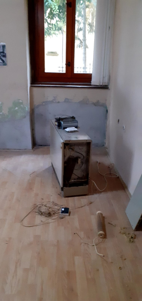 никакво грејно тело, оспособљена је ТА пећ. Поправљена су и затворена врата између учионице разредне наставе и фискултурне сале и преуређена да