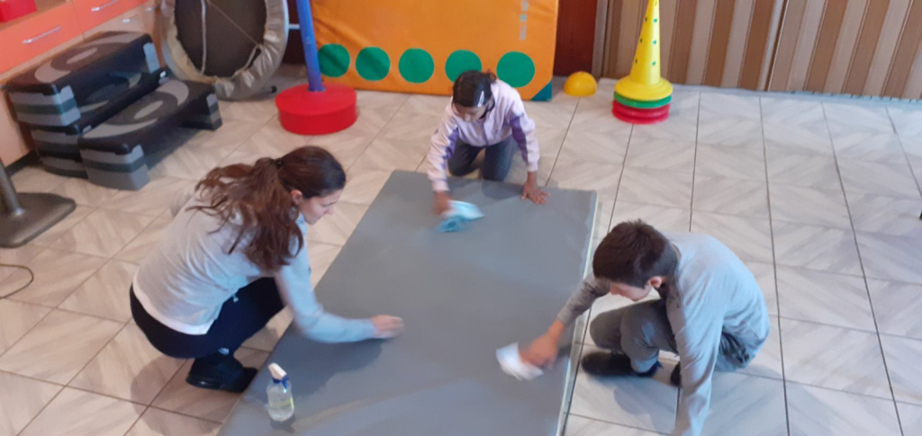 справе и реквизити (сто за стони тенис, 5 струњача, шведска клупа, ниска греда) који пресељењем 2019. из бившег простора школе нису имали где да се