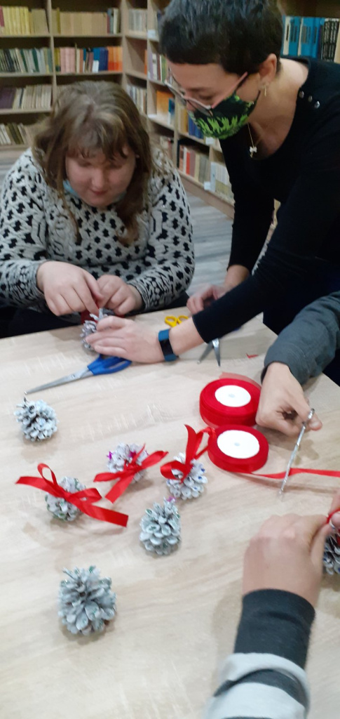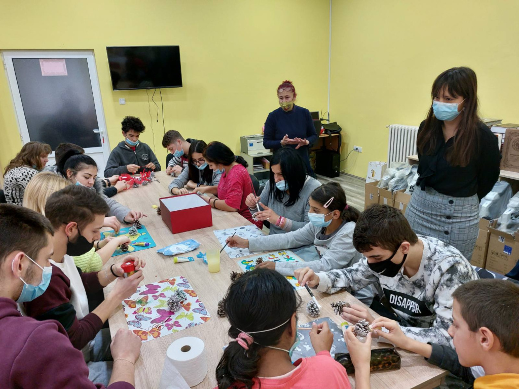 је везивала сатенске машне. Израђеним украсима окитиће се јелка у Техничкој школи.
