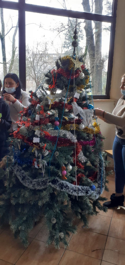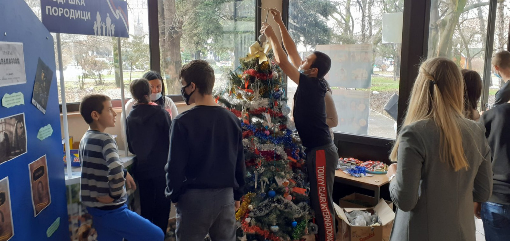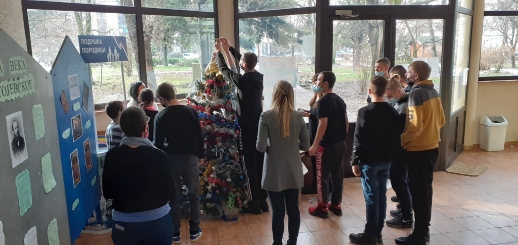 Кићење јелке у холу сарадничке ТШ''Никола Тесла'' Шид