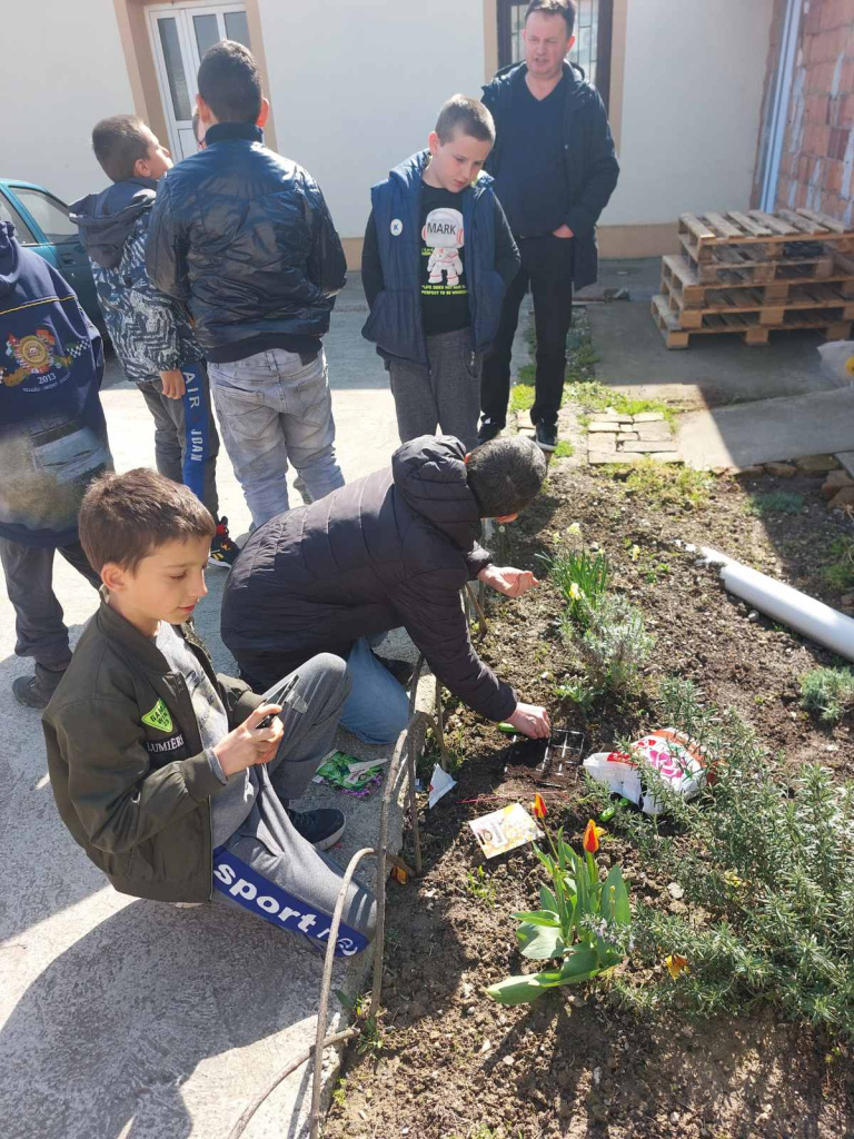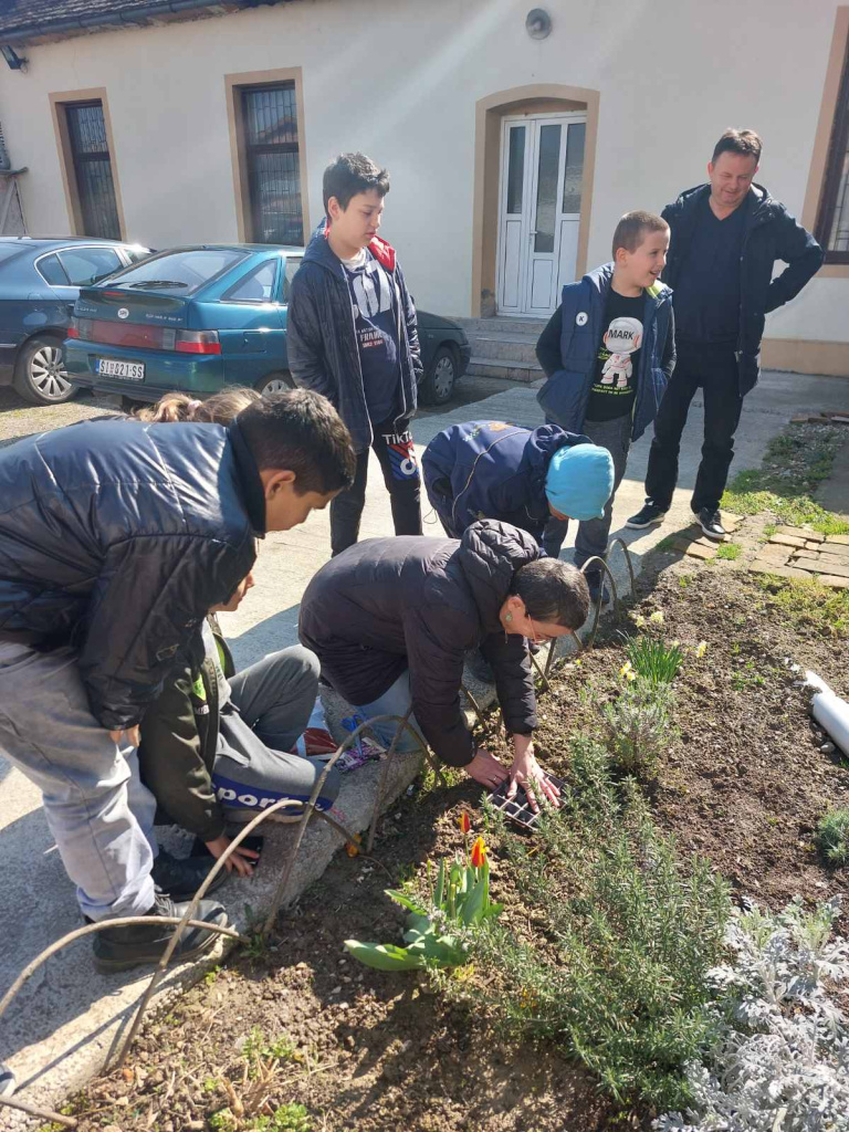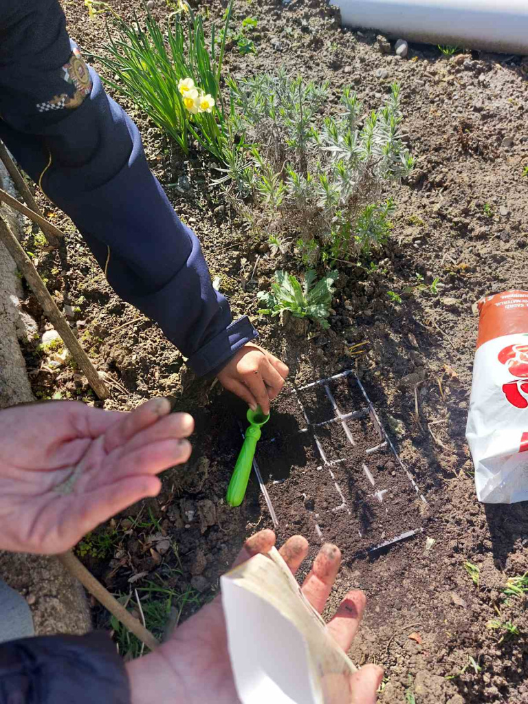 Следећи део часа су ученици провели у практичном раду у школској башти. Припремили смо сав потребан материјал,