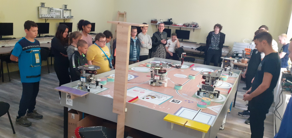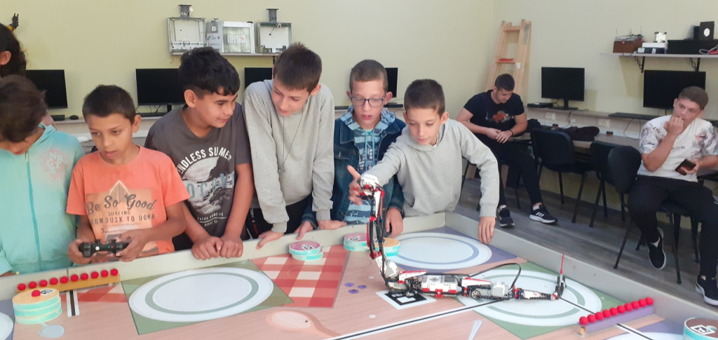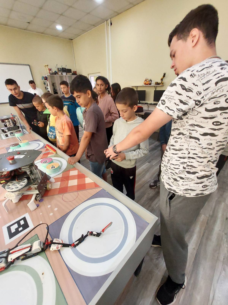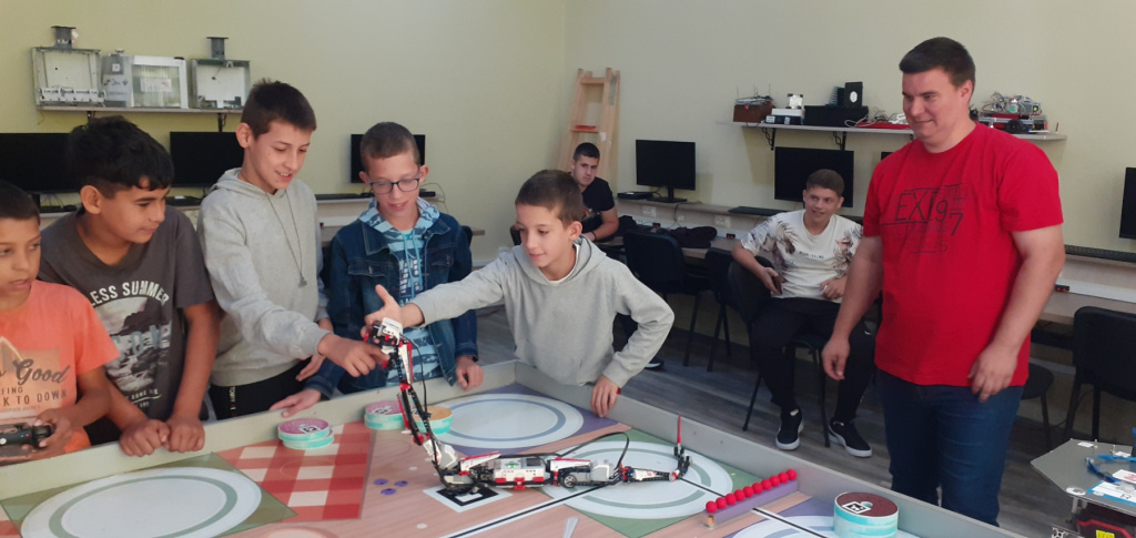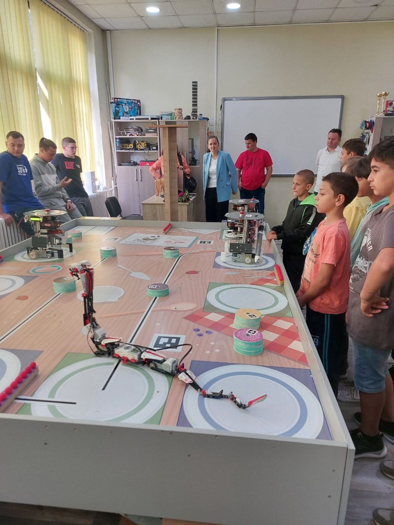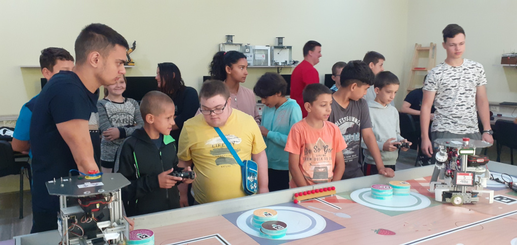 Показали су нам својеручно израђене роботе са којима су се представили на такмичељу. Наши ученици су имали прилику да испробају