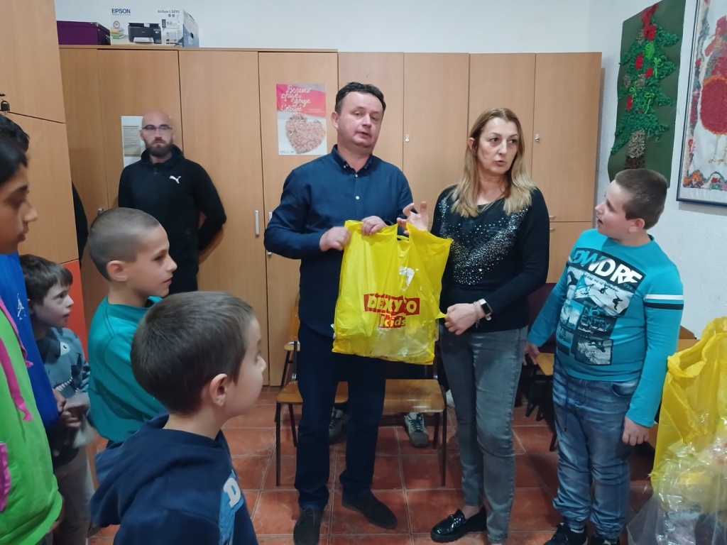 ПОКЛОН ВАУЧЕРИМА DEXICO , УЧЕНИЦИМА СУ КУПЉЕНЕ СВАКОМЕ ПО ДВЕ МАЈИЦЕ И ПОДЕЉЕНИ СУ ИМ СЛАТКИШИ ИЗ ДОБИЈЕНИХ ПАКЕТИЋА.