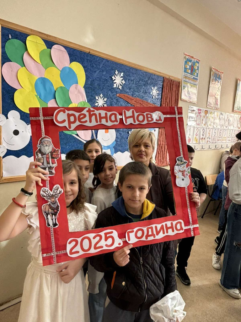 ШКОЛЕ И ПОДЕЛИО ИМ ПРЕДИВНЕ НОВОГОДИШЊЕ ПАКЕТИЋЕ .